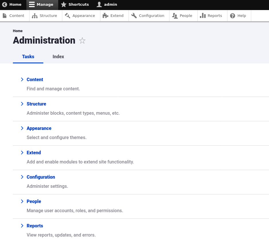 One of the other often confounding aspects of Drupal is the fact that roles and permissions have an outsized influence on how the user experience functions across personas. For instance, the local action tabs at the top of every administration page in Drupal are configured in such a way that certain users without special permissions may not see particular menu items, thus curtailing access to certain key locations in Drupal.