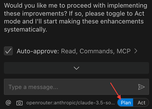 I started with the Cline extension for VS Code in a “Plan” mode (Figure 1).